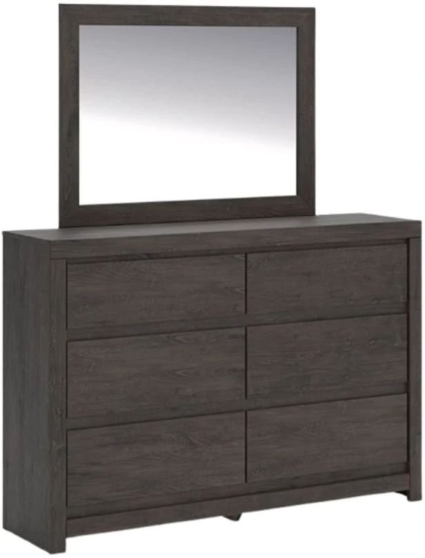 Find serene simplicity in the clean lines and dark neutral tones of this dresser with mirror. It’s a sincere approach to modern elegance, giving you high style at a great value. A sleek hardware-less design creates a fuss-free look. Short on storage? This dresser’s smooth-gliding drawers keep clothes and clutter neatly tucked away.Read More