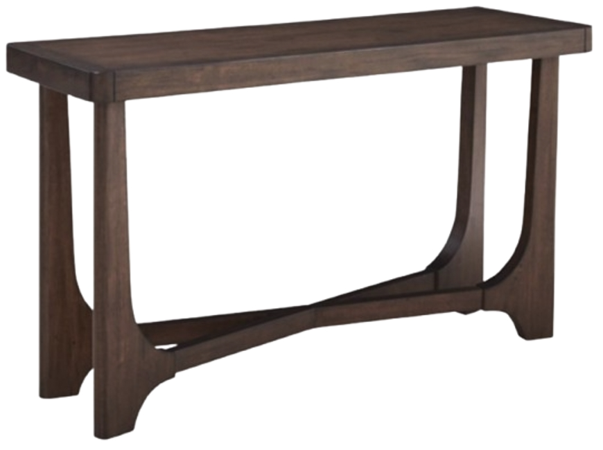 Master the art of casual contemporary design with the Korestone sofa table. Its softly rounded wood frame top pairs perfectly with an eye-catching double wishbone base and a rich brown finish for a decidedly here and now vibe. Talk about the ideal spot for decor, plants and more.Read More