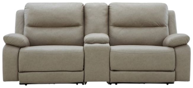 Experience ultimate comfort with this power reclining sectional. Generously cushioned with plush bustle back styling and pillow top track arms, it's wrapped in a richly neutral upholstery that’s oh-so soft. Jumbo stitching gives the sectional added definition.Read More