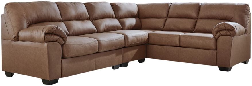 Modern comfort never looked so good. Sporting supremely soft yet durable cushions accented with high-fashion jumbo stitching, this stunning sectional is the ultimate choice in comfortably cool, contemporary style. Its caramel-hued faux leather indulges with an upscale feel and wows like the real thing.Read More